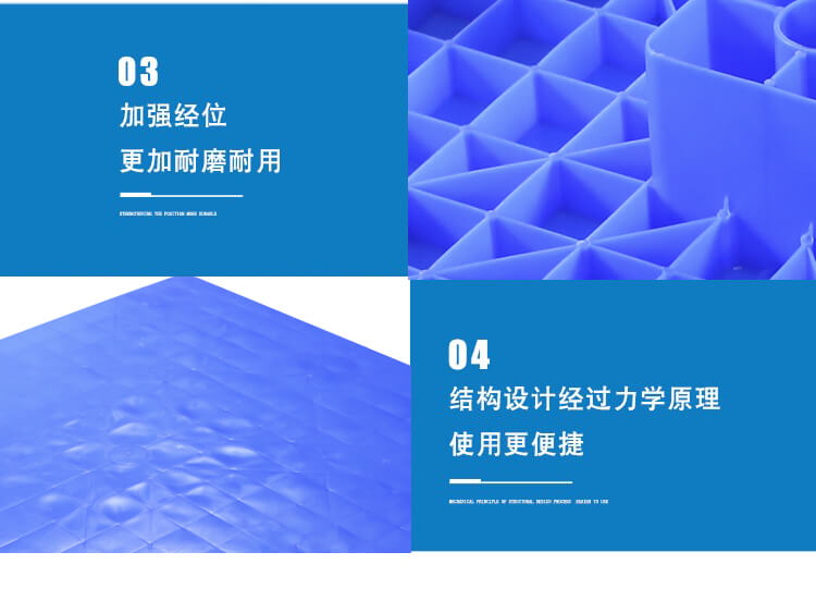 (1)、重量輕而且結(jié)實--以PP或HDPE為原料,添加著色劑及抗老化劑,采用注塑成型工藝一次成型。